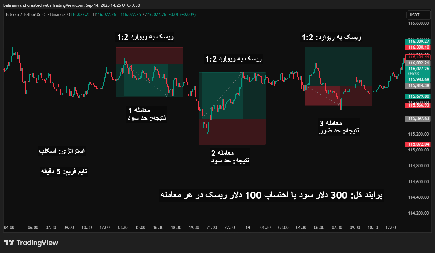 - تایمفریمهای ۱ دقیقه یا ۵ دقیقه استفاده میشوند.