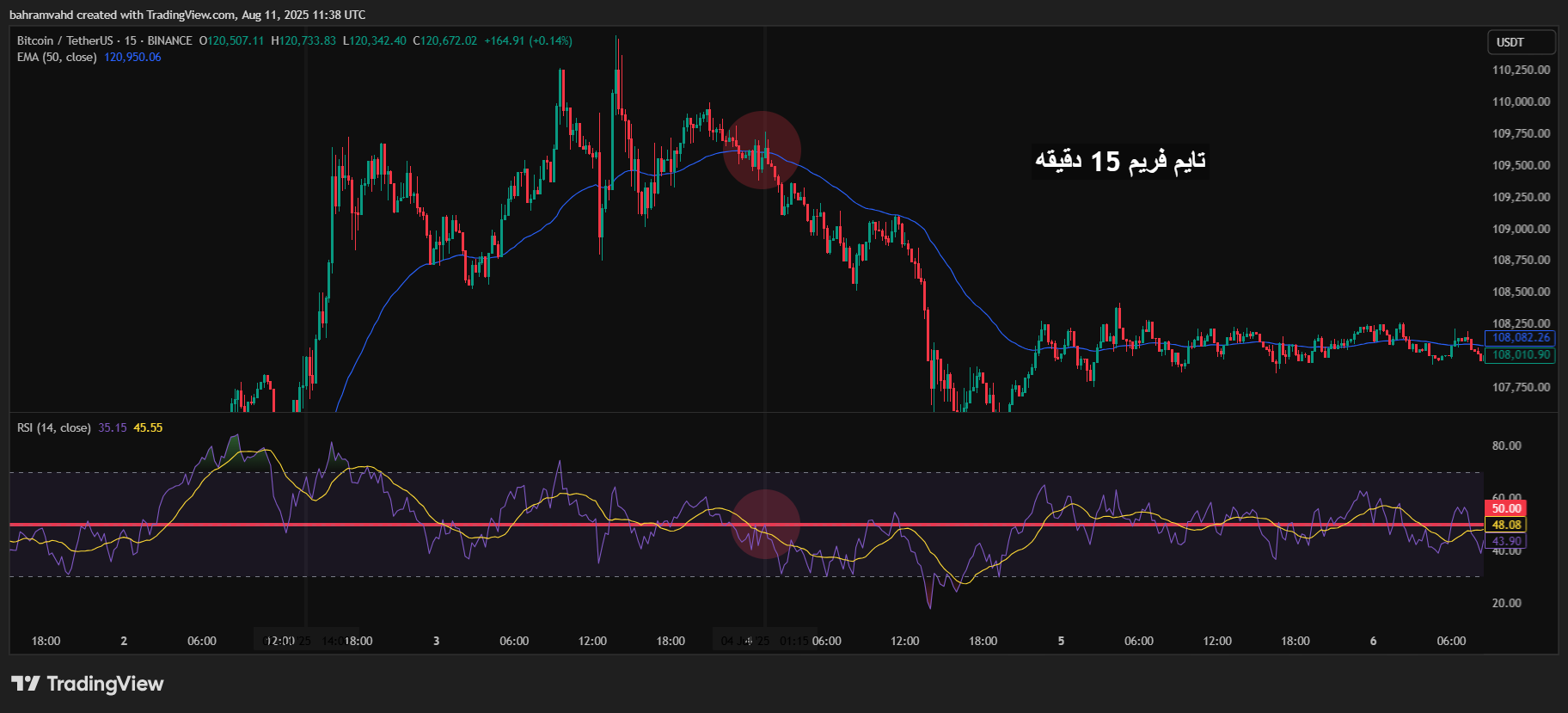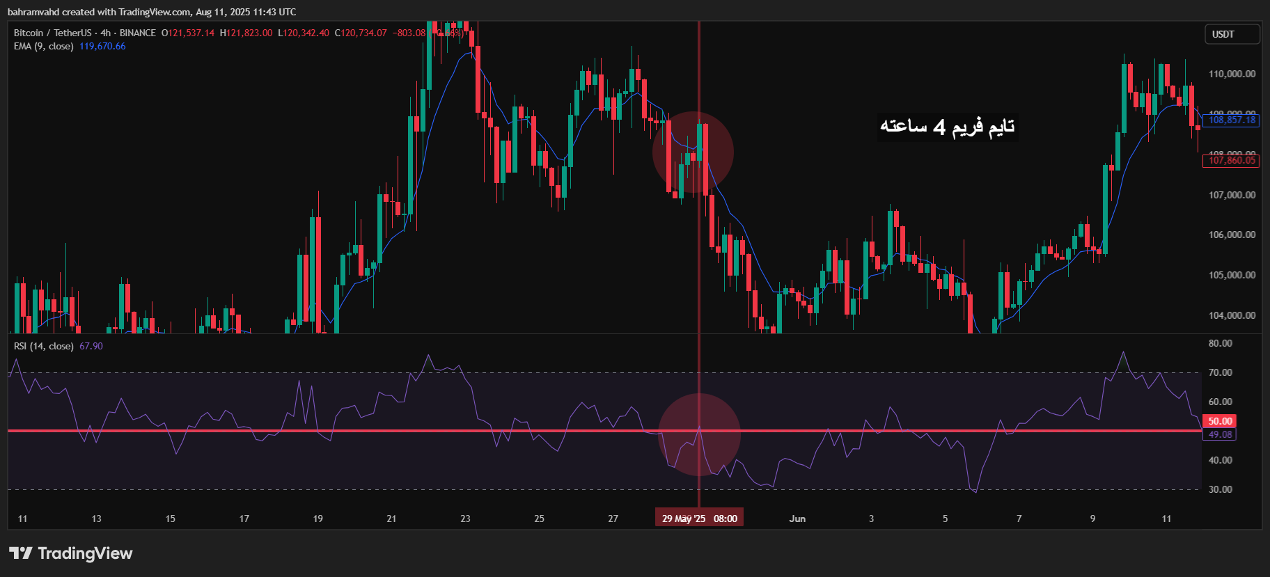 - رفتار EMA50 و RSI را در این شرایط مشاهده کنید.