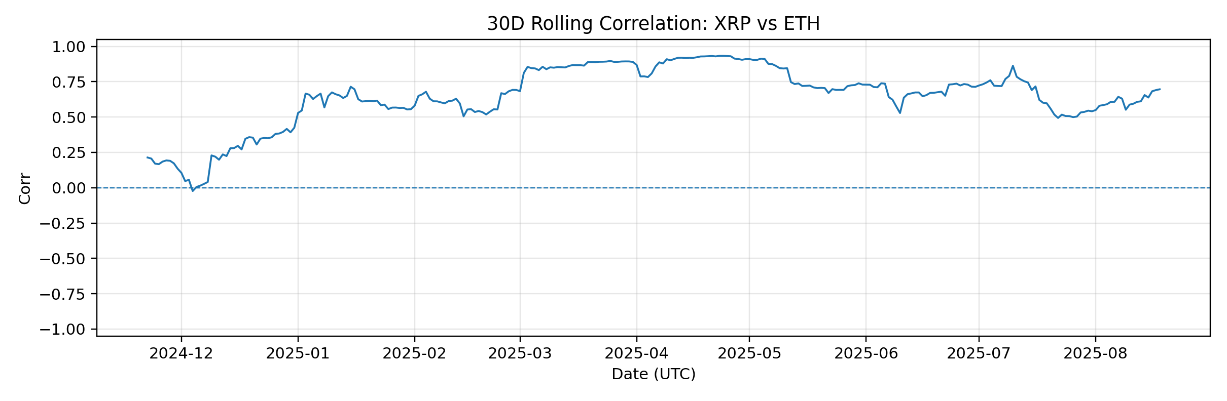 نمودار همبستگی ۳۰ روزه XRP با ETH: