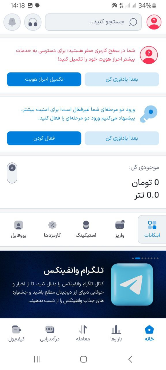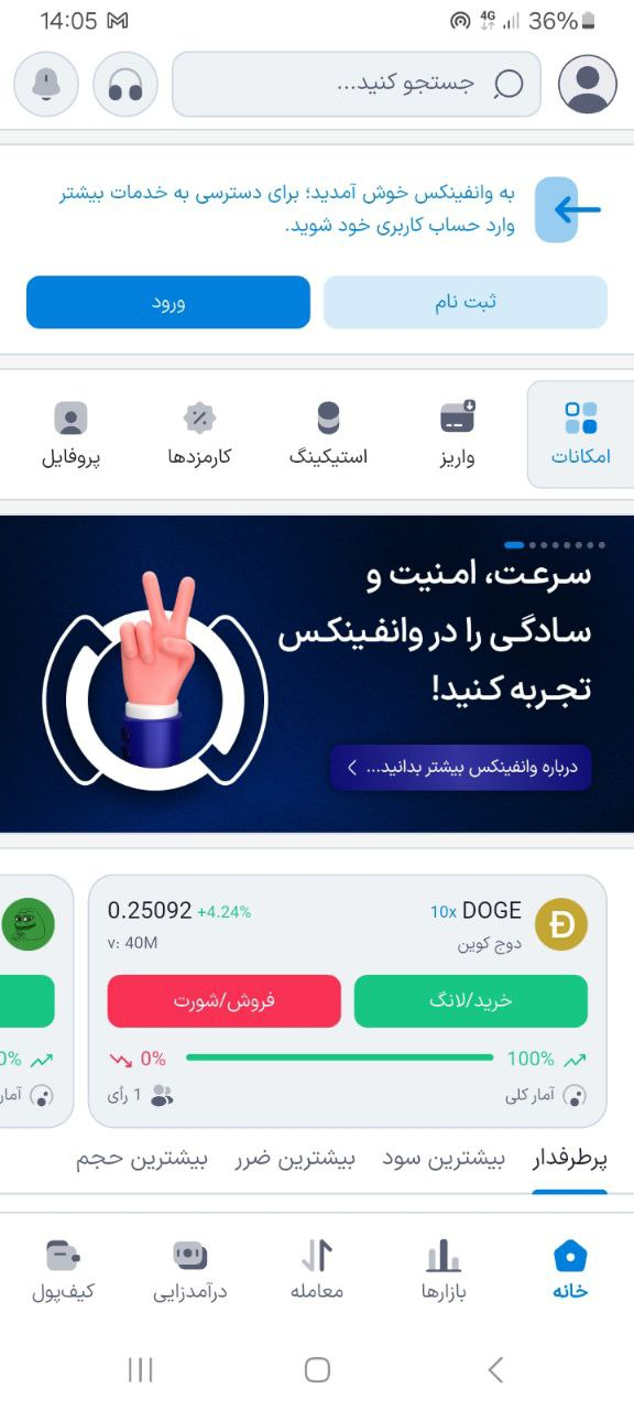 پس از تایید رمز عبور وارد صفحه اصلی صرافی در اپلیکیشن خواهید شد. تبریک! شما در صرافی وانفینکس ثبتنام کردید.