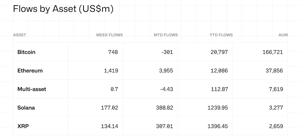 همچنین ورود سرمایه به محصولات مرتبط با سولانا و ریپل نشاندهندهٔ خوشبینی سرمایهگذاران به راهاندازی ETFهای آلتکوین در آمریکا است.