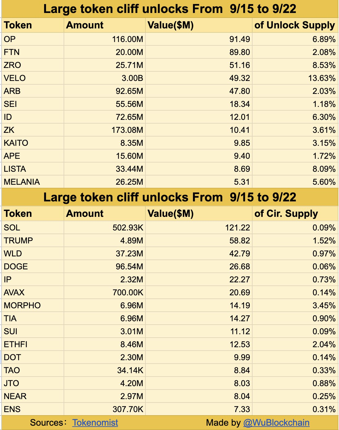 در مجموع، ارزش آزادسازیهایی که طی ۷ روز آینده اتفاق میافتد به بیش از ۶۵۰ تا ۷۰۰ میلیون دلار میرسد. این عدد در مقایسه با میانگین هفتگی آزادسازیها رقم بالایی محسوب میشود و میتواند احساسات معاملهگران را تحت تأثیر قرار دهد.